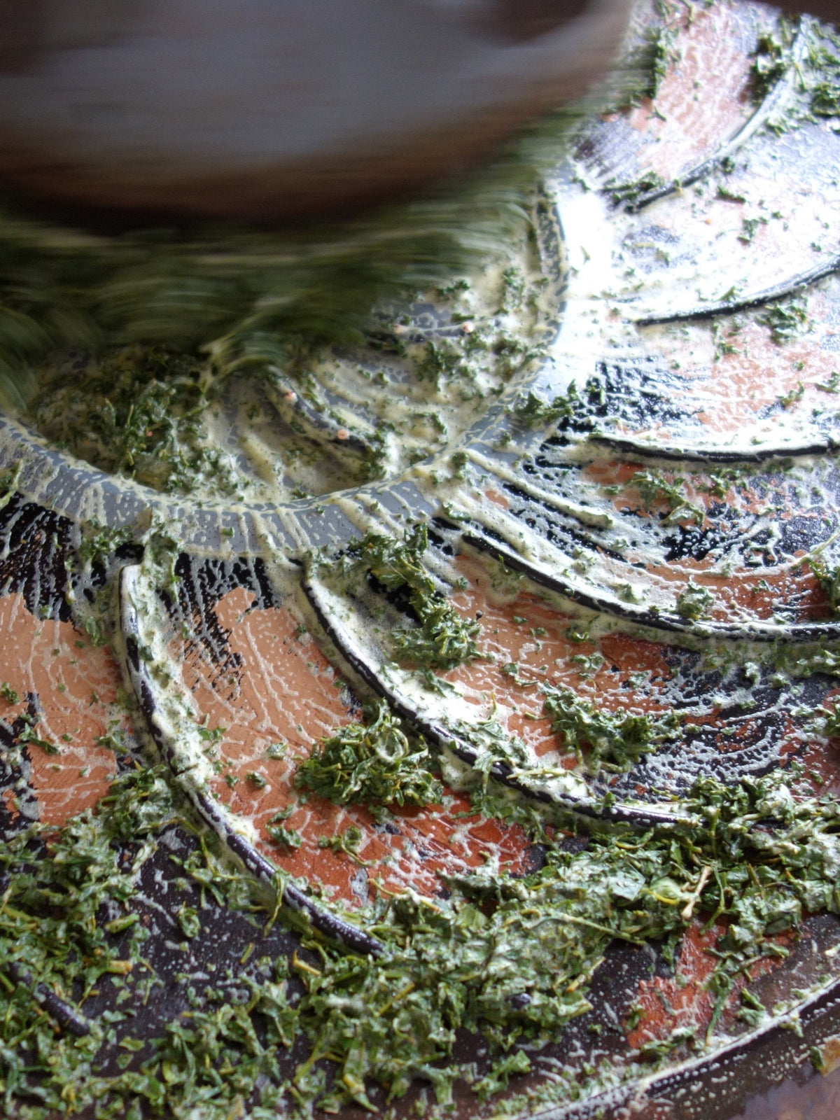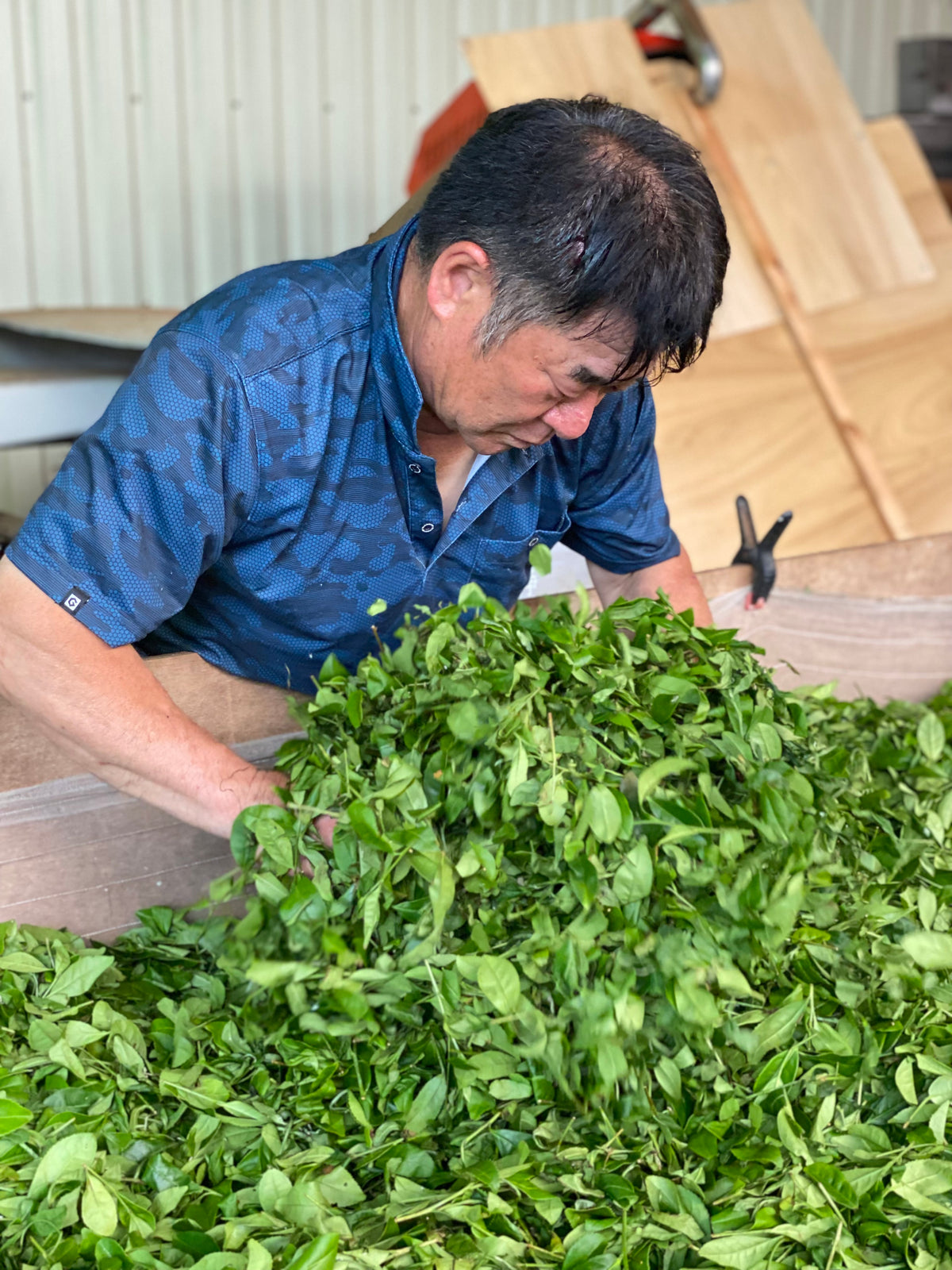 葉汁が溢れ出る「揉捻」